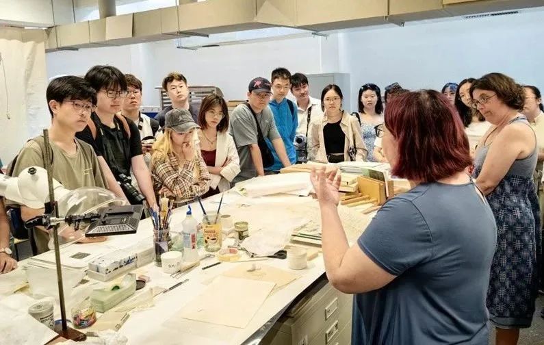 (图书馆员为同学们介绍书籍修复的知识)