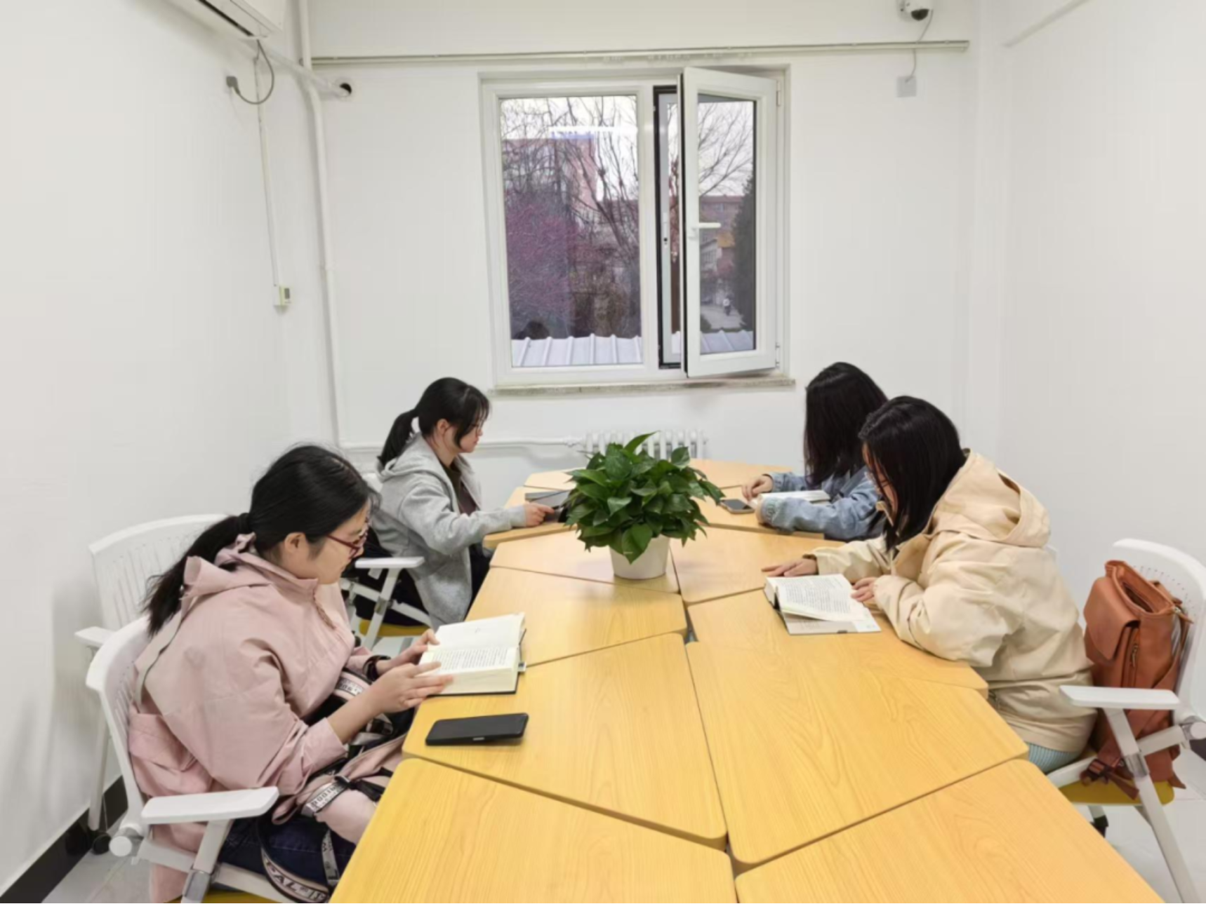 在奥林匹克森林公园、教二草坪等地开展春、秋游团建活动,漫步自然、共读好书。