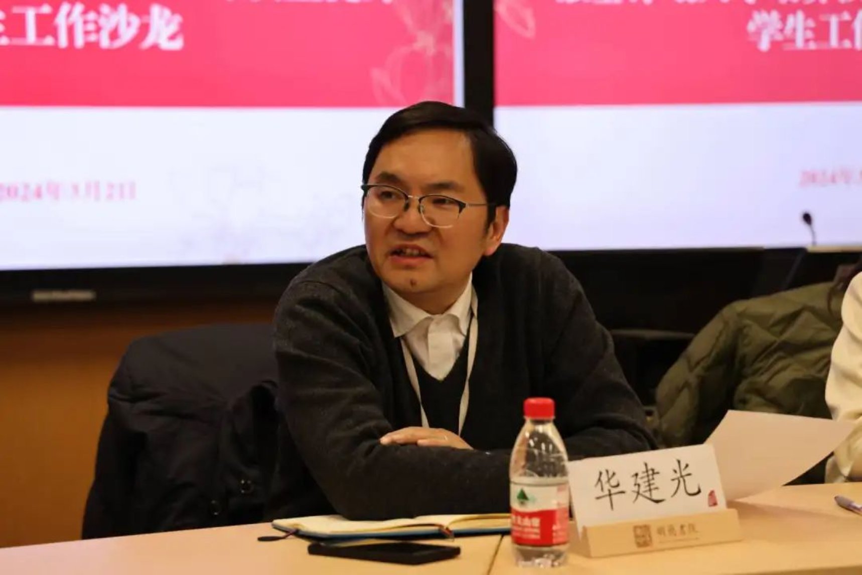 华建光主持沙龙,希望同学们就强基计划转段考核与动态进出机制、培养方案优化调整、各阶段考核办法与效果、教学组织和课程质量、学生学术训练、课程数字资源与配套实践、本研一体化培养等提出意见建议。