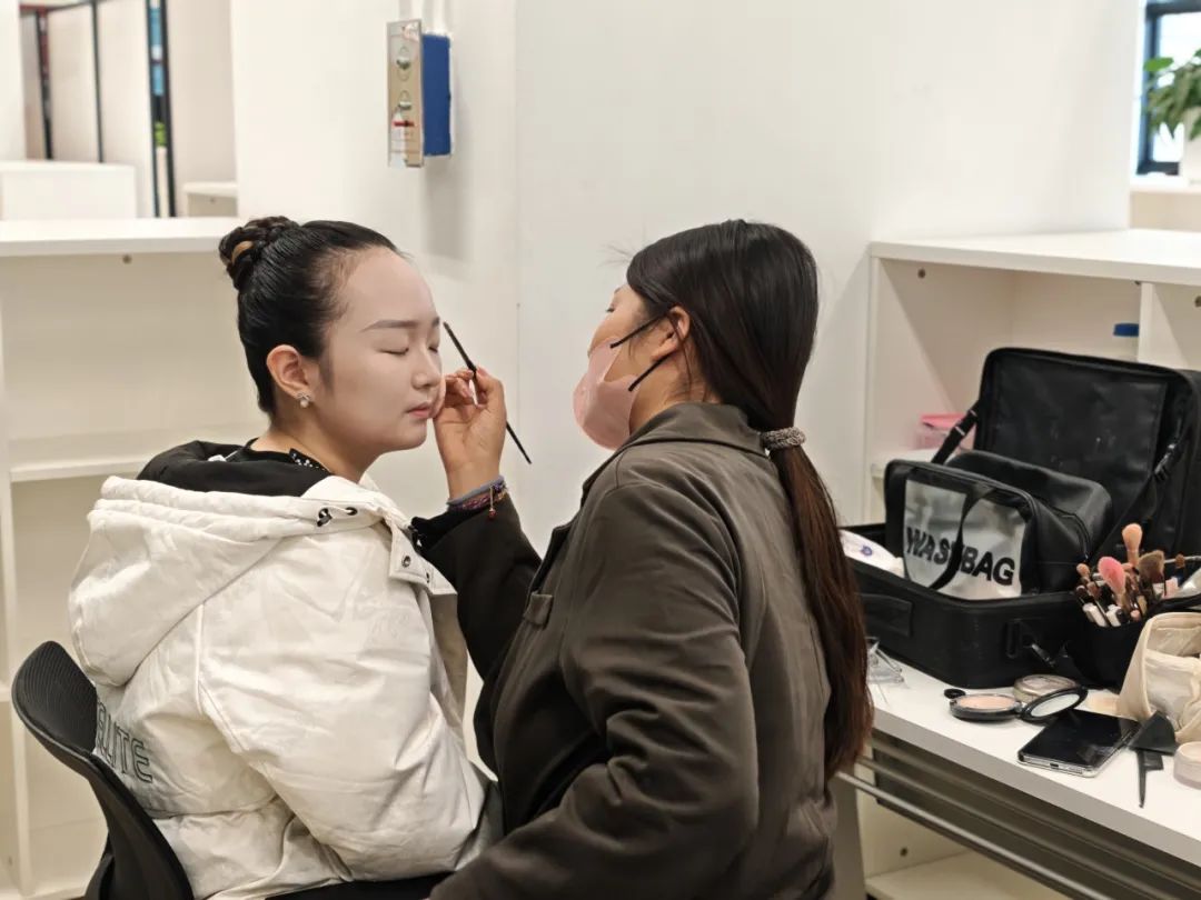 13:30,51吃瓜 健美操队的队员们到达立德楼一层51吃瓜 空间开始化妆。