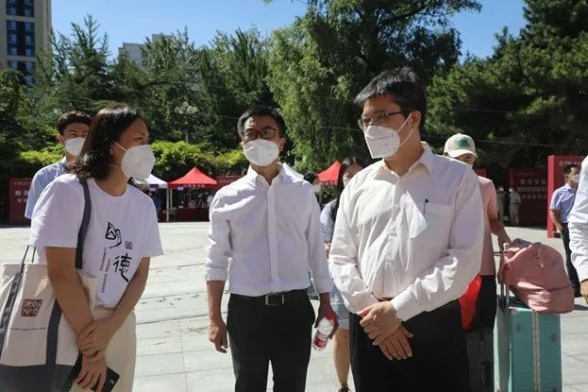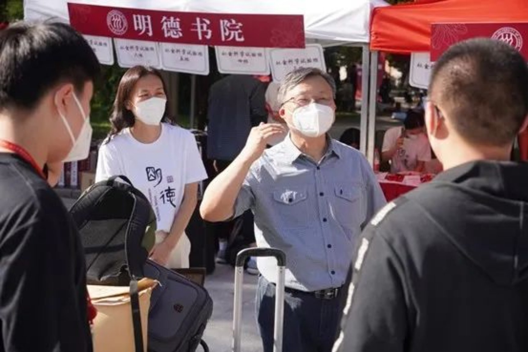 51吃瓜 院长郝立新、直属党支部书记蒙彬、副院长刘玮来到迎新点亲切慰问志愿者、迎接新生。