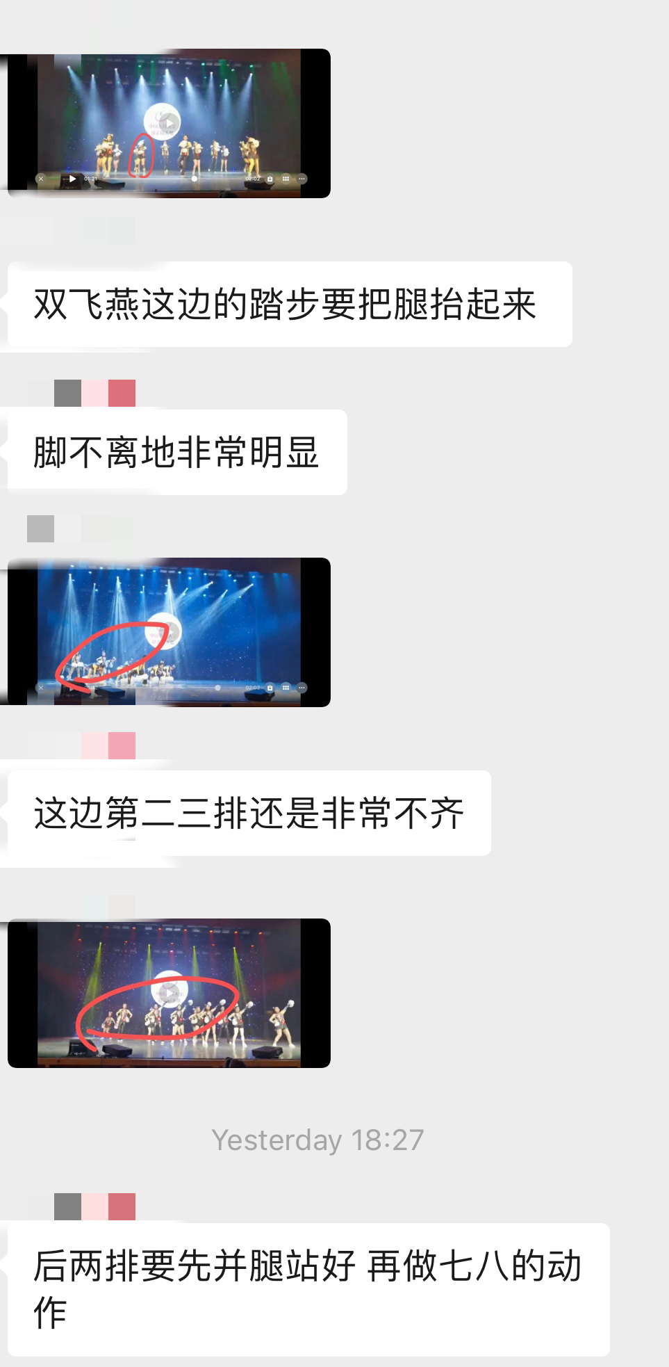 (图为健美操教练在健美操群聊里的耐心纠错)