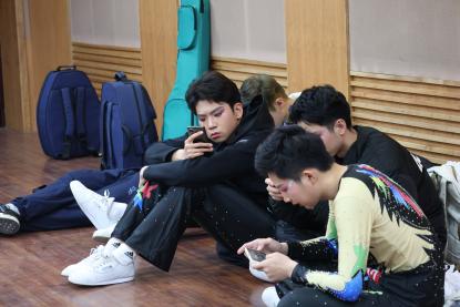 紧张的彩排与备赛之余,队员们有的在仔细回顾动作,发现不足,精益求精;也有的互相加油鼓劲,齐心协力;还有的勇敢迎战,克服紧张恐惧…….