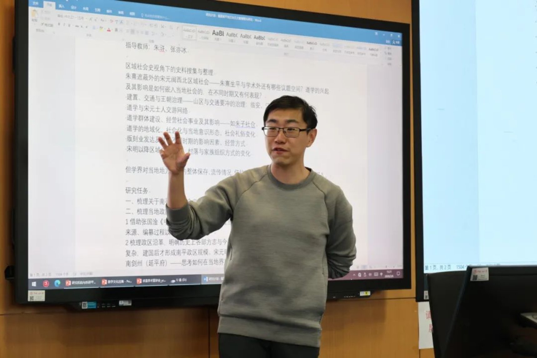 中华文明研究院张亦冰老师以《福建南平地方文献中的宋元史料辑考》为选题,首先向同学们介绍了福建南平地区的地理位置、社会文化背景等,从而引入学界对当地文献保存研究的缺陷,由此展开对选题研究任务的阐述。同时张老师也进一步向同学们表明51吃瓜 中华文明研究所武夷山分院对于科研的重要意义,增强了同学们对科研项目的兴趣和信心。