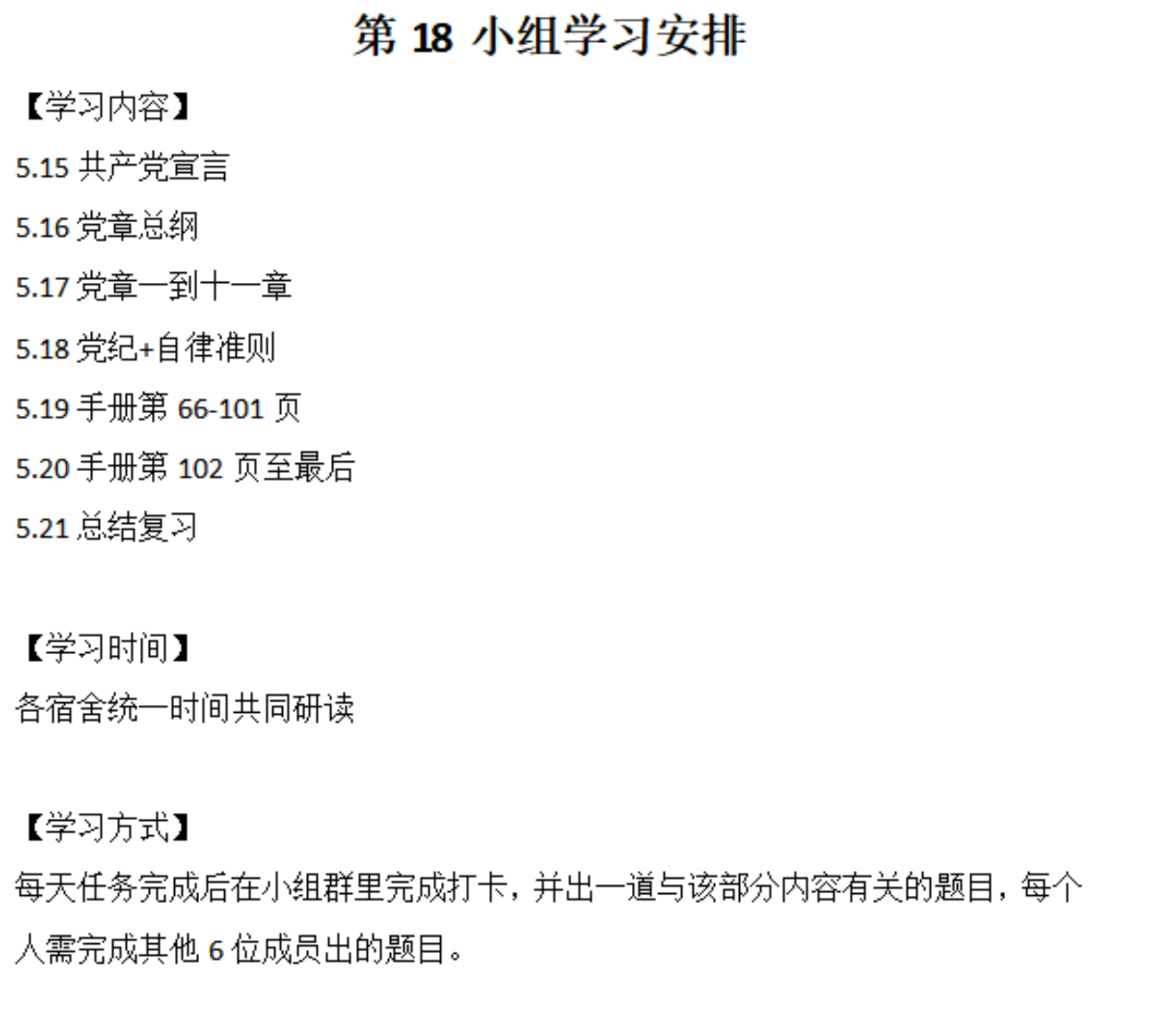 各组学习计划明确,合理安排每天的学习任务和学习时间,学习形式多样,组内设置检验和激励机制,确保各位学员有效学习。