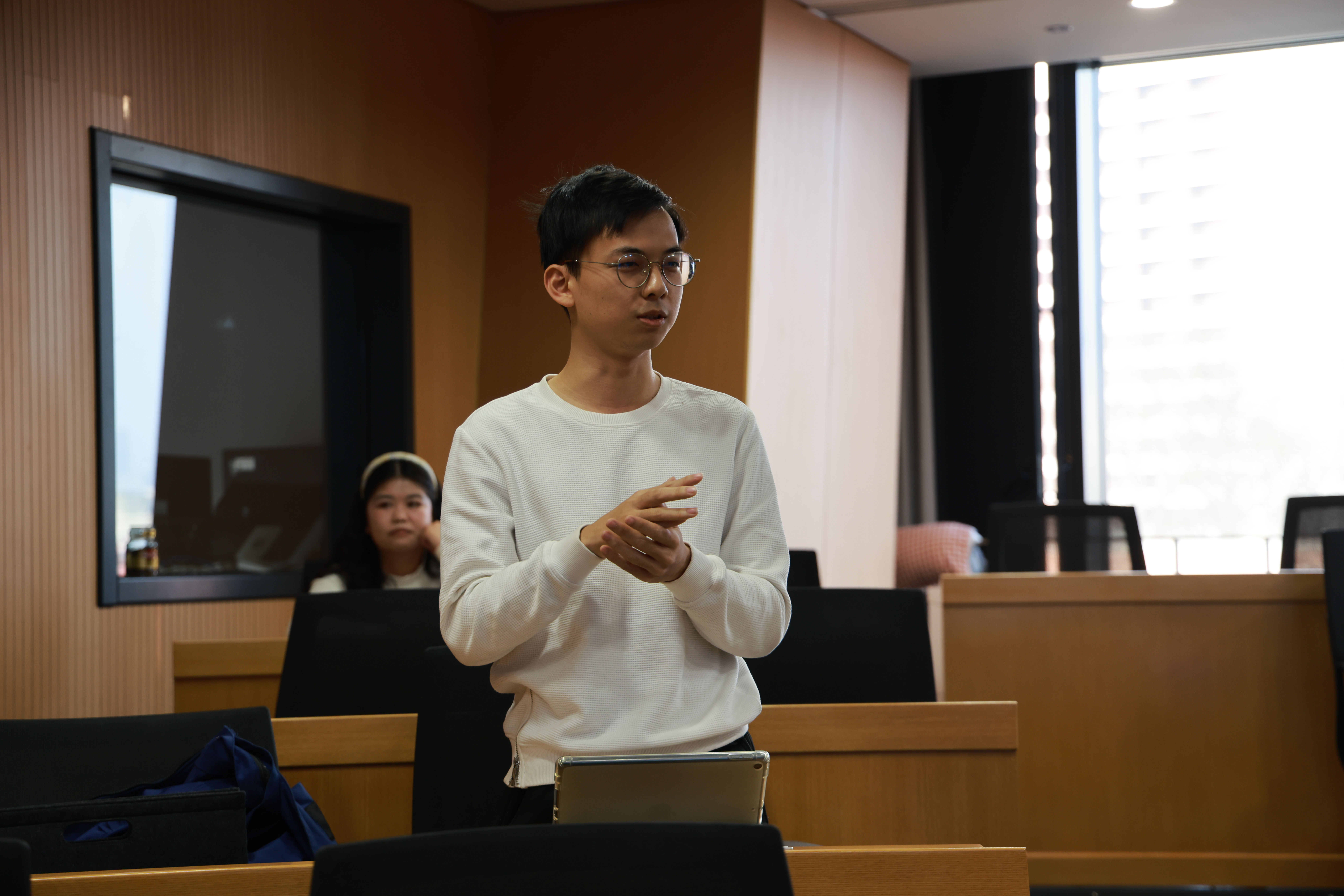 对谈初始,任明老师向同学们简要介绍了现有的多种人工智能技术,包括谷歌、特斯拉等先进成果——人工智能技术进行了速度飞快地迭代更新,并且大多已经成功在各行各业实现了有效应用。人工智能分为强弱,弱人工智能功能较为单一,集中在视角与应用领域,而强人工智能则拥有多领域的思考推理能力甚至自我意识。对于机器人的智能水平越来越高甚至或将代替人类的问题,闫慧老师则并不认为近期大热的ChatGPT能够在未来顶替教师。现场同学也认同教师不会被替代,同学们在这一环节参与了讨论,教师的独特性在于因材施教和道德引领,而不是简单的知识灌输,这也引出了下一话题——机器人是否具有道德?