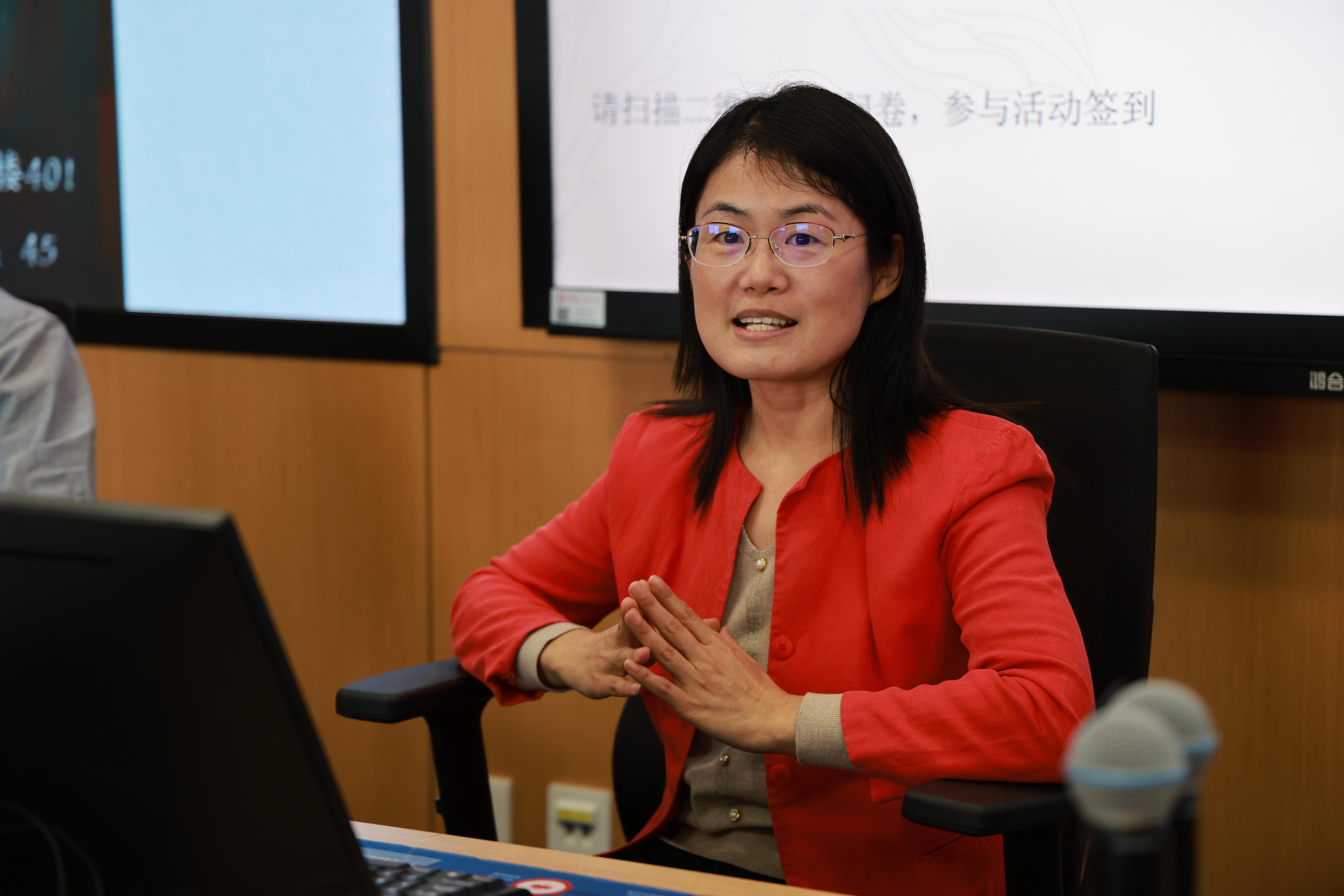 接下来王小伟老师提出了有关机器人风险的问题,鉴于我们看到有机器能够在分析多方资料后提出有洞见性意见的情况,那么机器是否会产生不受控的现象呢?三位老师不约而同地谈论到了ChatGPT的使用情况,同学们也广泛参与,谈到自己的使用感受,大家主要观点是该人工智能组织语言的能力相当突出,能够总结概述所给信息,但是其终究缺少自我思考的能力,论述时缺乏论证感,但也有同学提出对人工智能缺乏创造性的质疑。在随后的讨论中,关于机器人的创造性,老师们提到机器人对于信息的处理能力实际由创造者所赋予,并且机器人不像人有实际生活工作实践经历,因此不可能具备创造的能力。老师们也脑洞大开,提出了“去除创造者对机器人的限制”的假设。