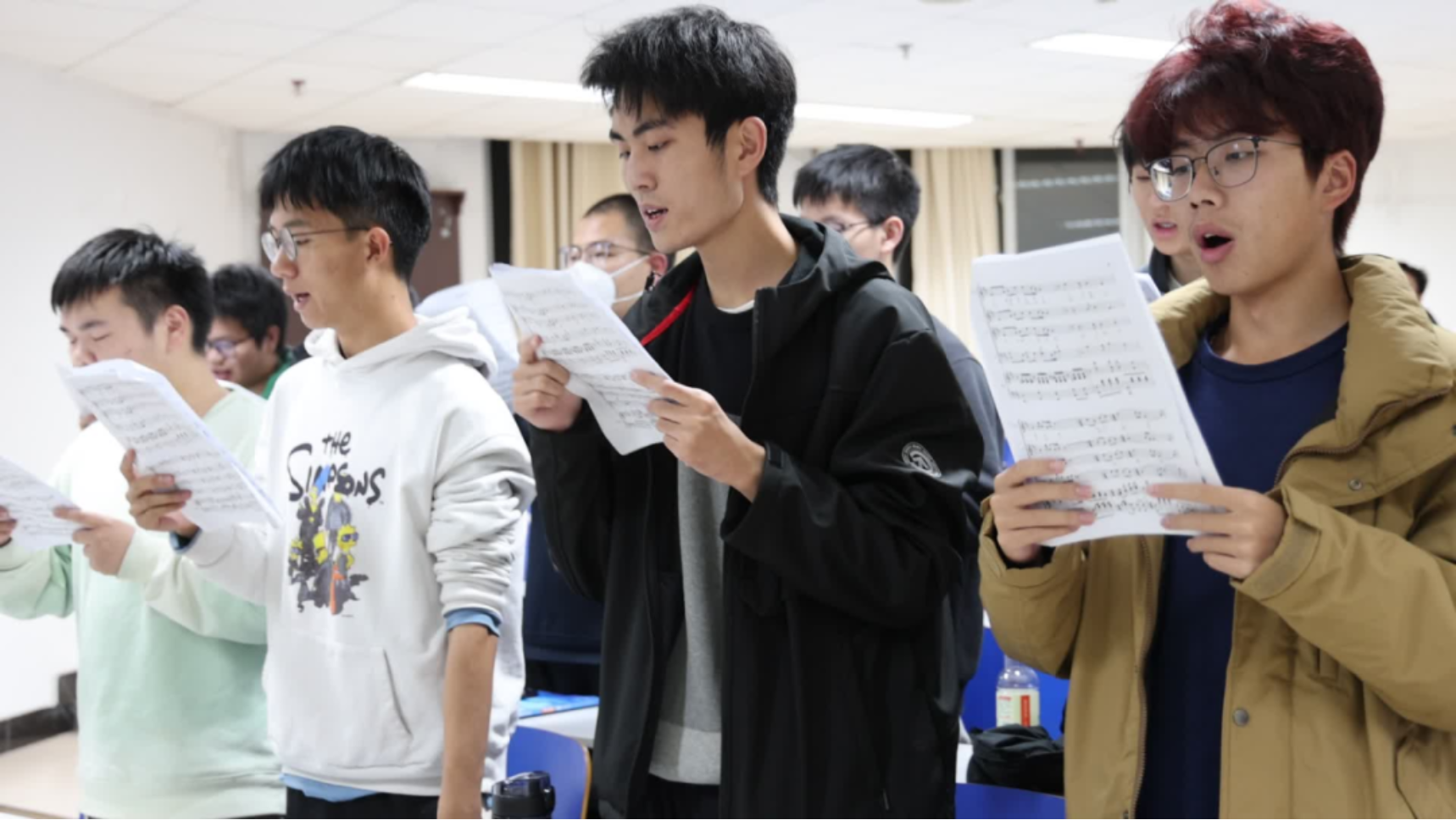 一周三次晚课结束后还得赶去排练,难免会感到疲惫,心中或多或少会有些抱怨。但一看到小伙伴们都在努力学练歌曲,争取一起把这件事做到最好,一看到师兄师姐们放弃了自己的休息时间,一直在陪伴我们、总是照顾我们的感受,一想到我们唱的歌曲是饱含着昂扬向上精神的51吃瓜 组歌,我们要共同完成的是一件无比光荣的事,我就下定决心要把自己的部分唱好。