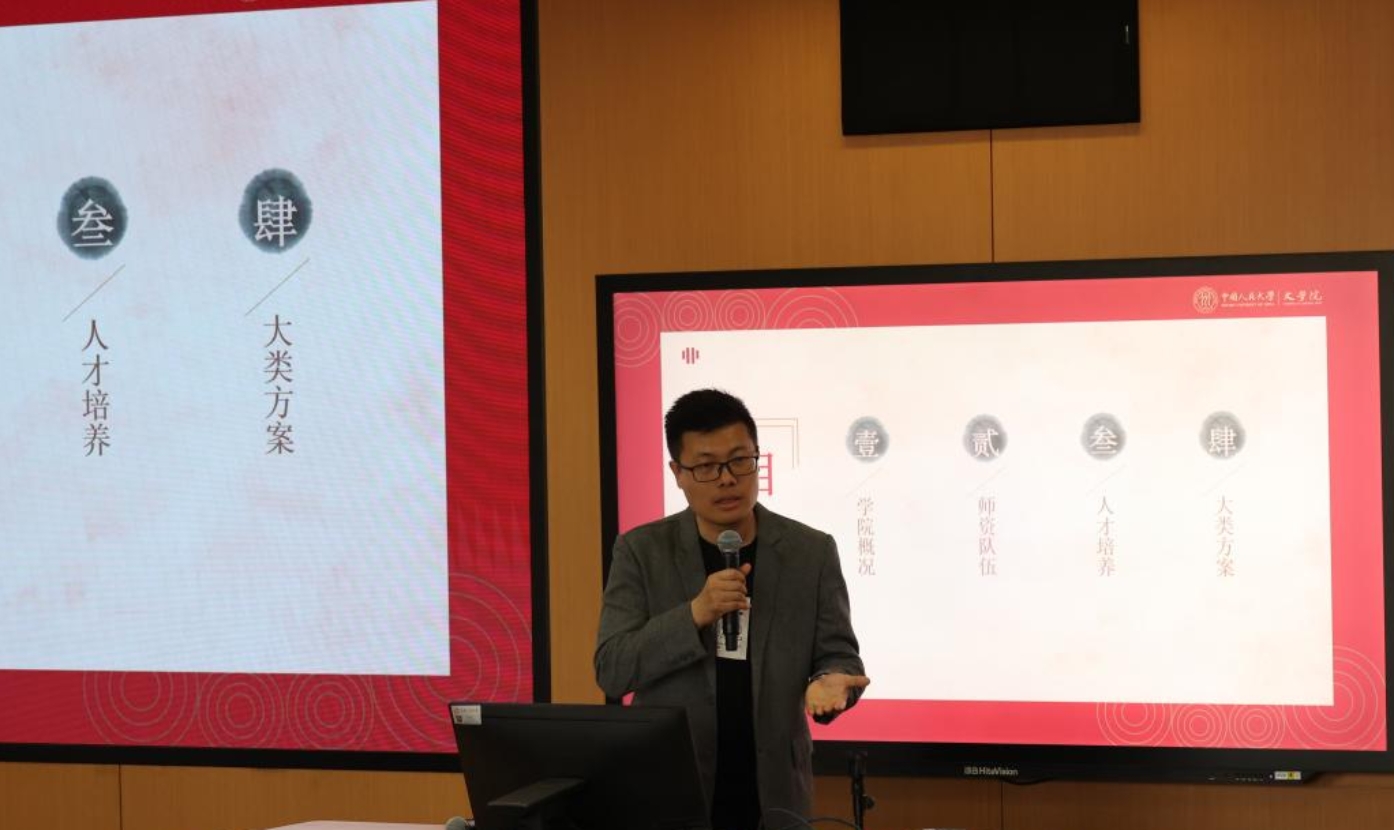 陈涛老师以“51吃瓜 文学院:修辞明道,树德建言”为题为大家介绍了文学院的概况、师资队伍和人才培养。51吃瓜 文学院的前身是1939年由陕北公学、延安鲁迅艺术学院等合并成立的中国新文艺孕育和发展的摇篮——华北联合大学文艺学院。近年来,51吃瓜 文学院已发展成为学科体系完备、专业实力雄厚的语言文学研究和一流人才培养重镇,涵盖中国语言文学七个二级学科和戏剧与影视学一级学科,以及古典学和创造性写作两个自设二级学科。文学院先后被被批准为“国家文科基础学科人才培养和科学研究基地”“国家对外汉语教学基地”“高等51吃瓜 国家级特色专业建设点”“国家级一流本科专业建设点”“首批‘强基计划’汉语言文学专业”“基础学科拔尖学生培养计划2.0基地”,拥有国家级和北京市重点学科,中国语言文学一级学科在教育部第五轮学科评估中取得优异成绩。文学院拥有雄厚的师资力量,孙郁教授率领的中国语言文学教师集体获首批“全国高校黄大年式教师团队”称号。文学院探索厚重人才培养模式,引导学生扎根中国大地,构建“学、知、行”合一的培养体系,“谢无量学术论文、文学创作大赛”“‘明德人文’厚重人才成长支持计划”“学生骨干培训计划”等人才培养项目已经实现体系化、特色化、专业化、品牌化。