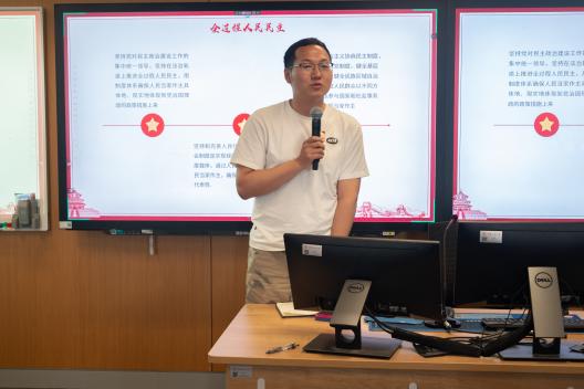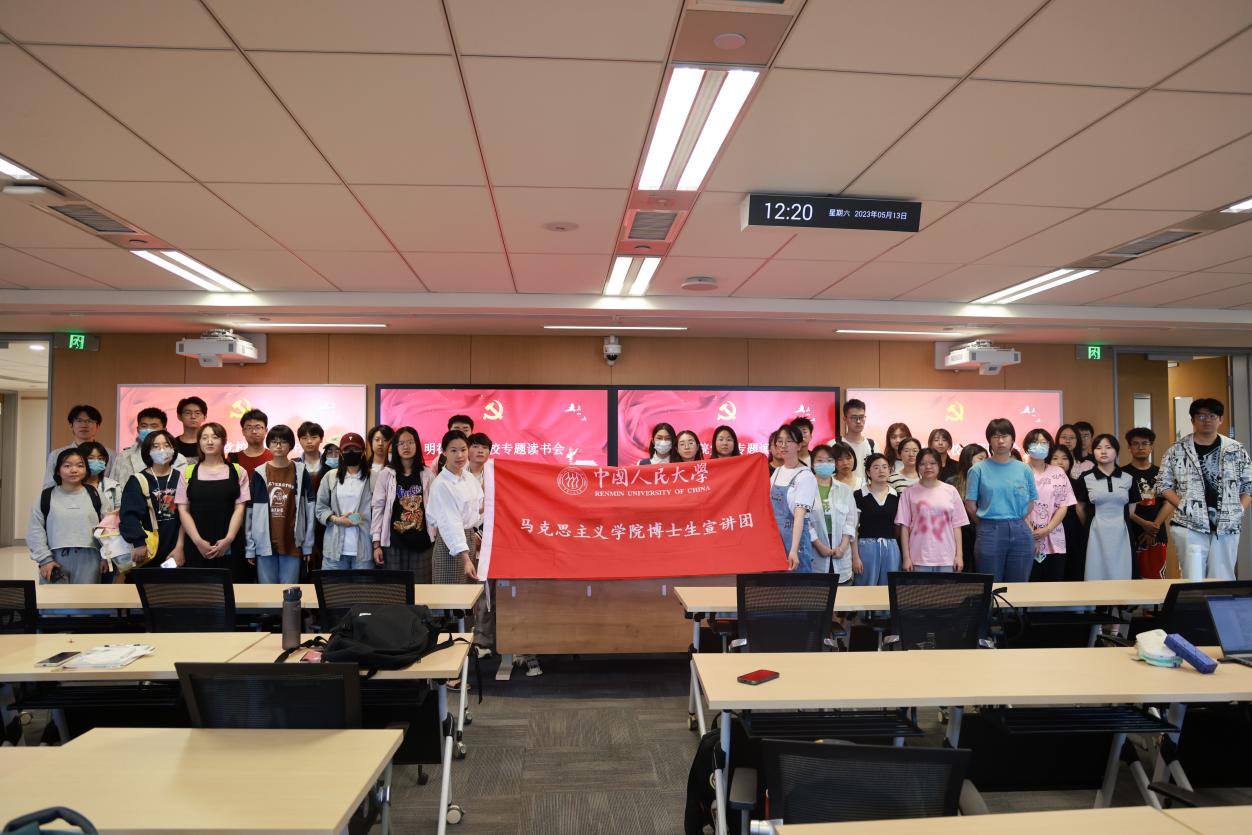 主题教育专题读书会围绕党的二十大报告、党章、“新时代中国特色社会主义思想实现了马克思主义中国化时代化新的飞跃”“坚持不懈用新时代中国特色社会思想武装头脑、指导实践、推动工作”“铸就社会主义新辉煌”“坚持和加强党的全面领导”等十二个专题展开分享讨论。在前期理论研读小组集中学习基础上,每个理论研读小组围绕一个学习篇目,从文本研习、理论联系实际等方面进行理论导读,并结合个人生活工作经历分享学习体悟。博士生宣讲团讲师针对每组的分享进行了点评,并从理论高度、思想深度、现实维度、情感温度等方面进行总结指导。