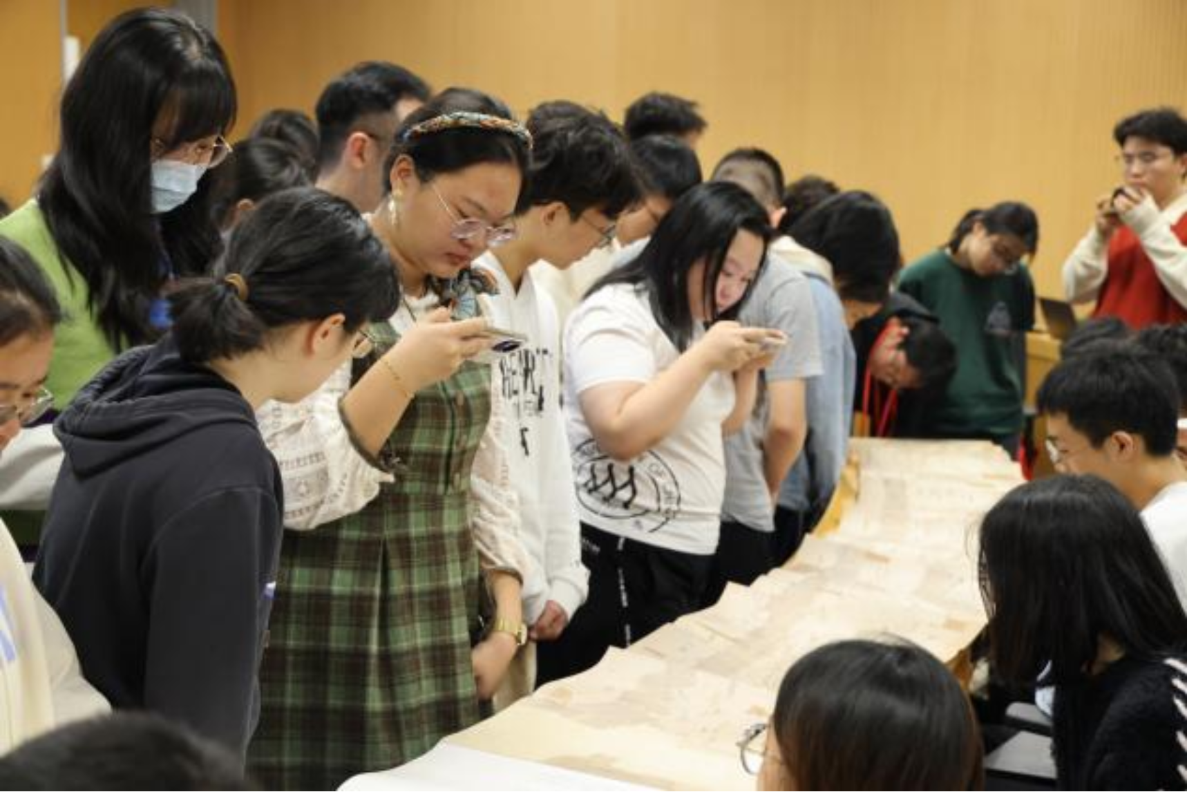 随后,白鸿叶老师向同学们展示了部分拓本地图,在互动中进一步引导同学们去探求存于地图背后真实生动的历史信息,同学们积极上前参与到“寻找我的家乡”小活动中。