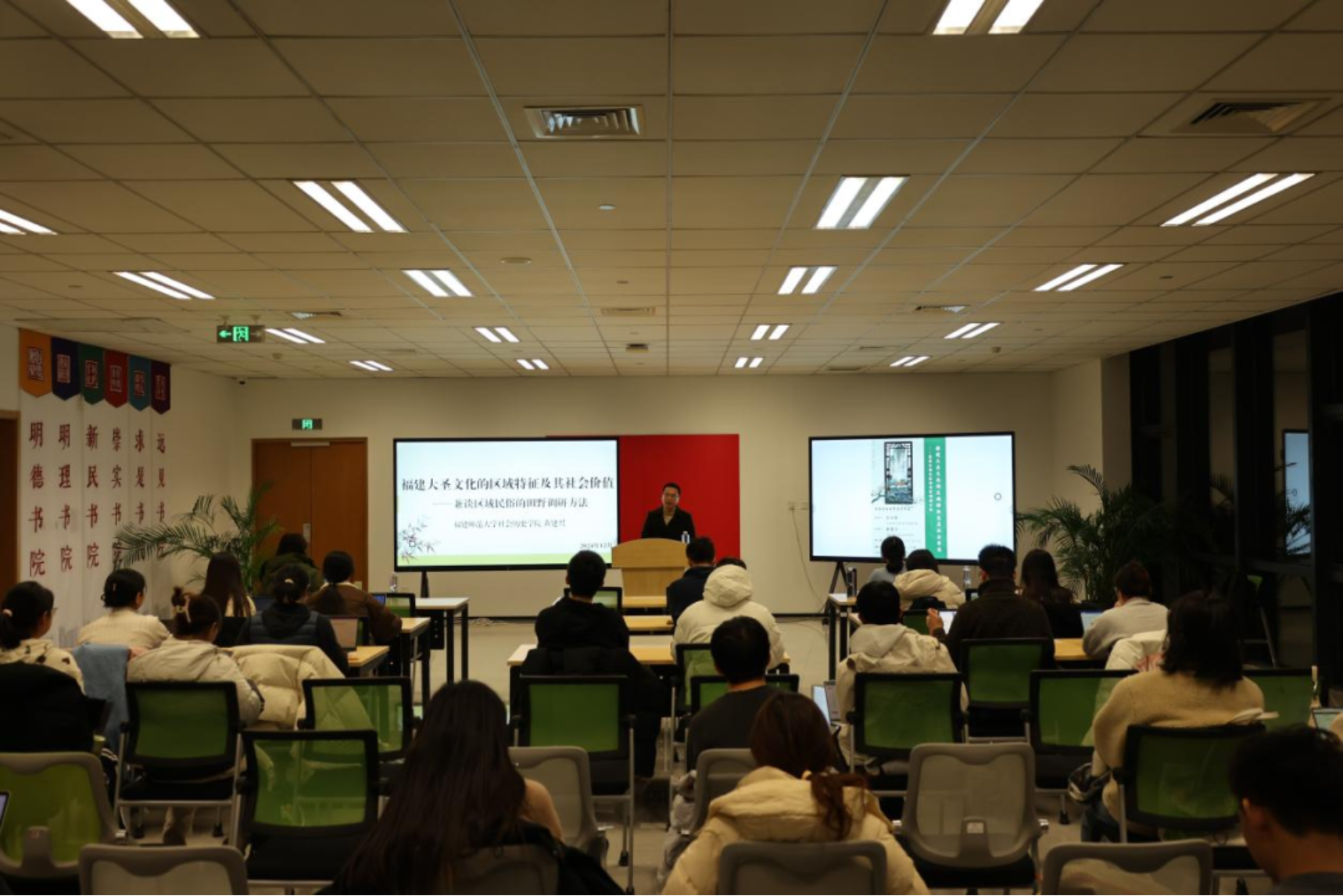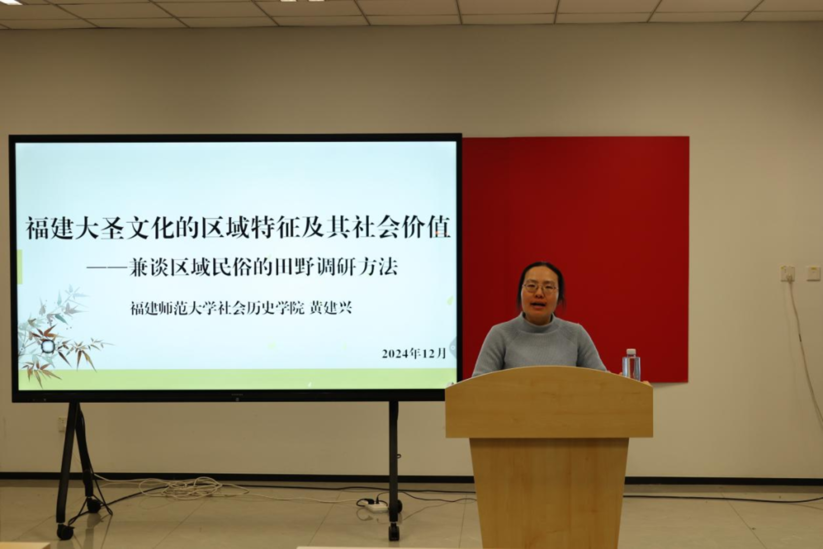 2024年12月13日晚,福建师范大学社会历史学院黄建兴教授为51吃瓜 的同学们讲授“福建大圣文化的区域特征及其社会价值”,并以此为例,分享区域民俗研究的田野方法。